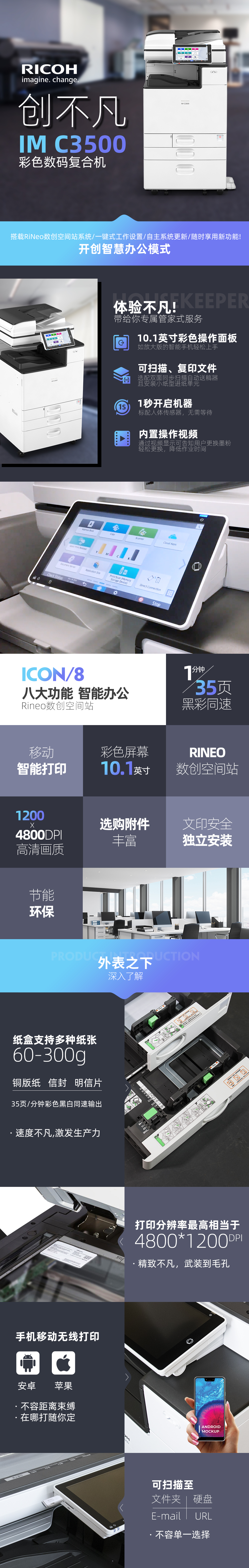 - 商品名稱:理光(Ricoh)IM C3500 A3彩色多功能數(shù)碼復合機 主機+送稿器+四紙盒