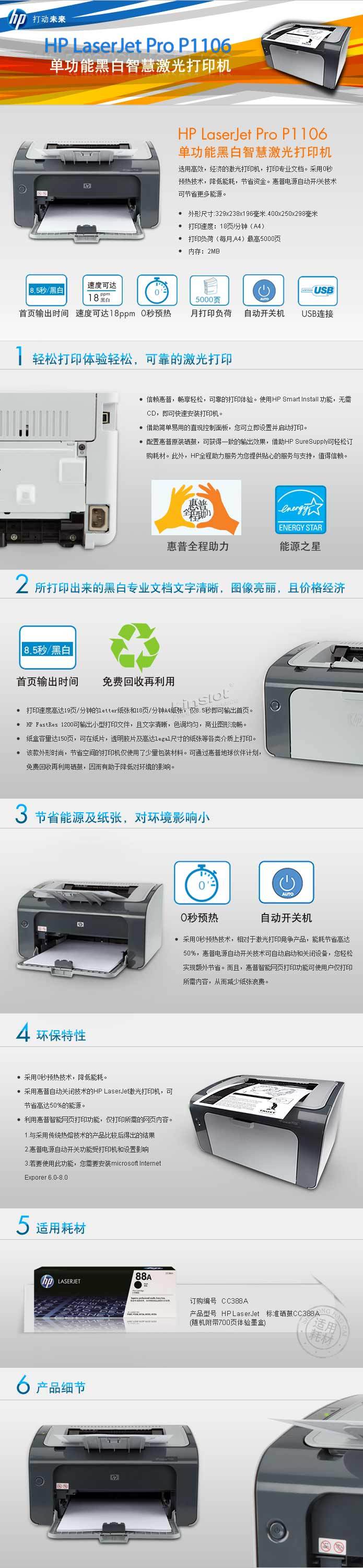 • 商品名稱:惠普(HP)A4黑白激光打印機(jī) P1106 18ppm 手動(dòng)雙面 不支持網(wǎng)絡(luò)功能 分辨率600*600dpi 適用耗材:CC388A/CC388X 三年保修