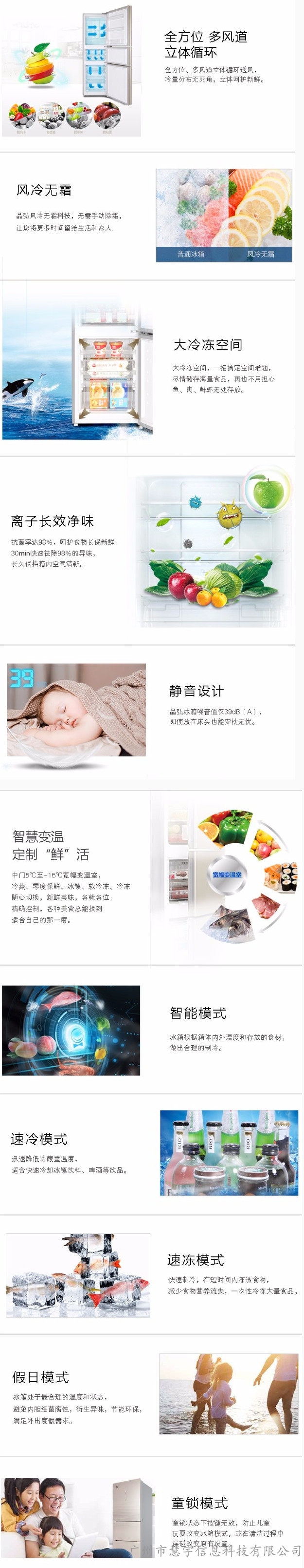 • 商品名稱:晶弘/KINGHOME 286升三門冰箱 BCD-286WETG 風冷無霜 玻璃面板 浮光金 離子抗菌凈味 二級節(jié)能