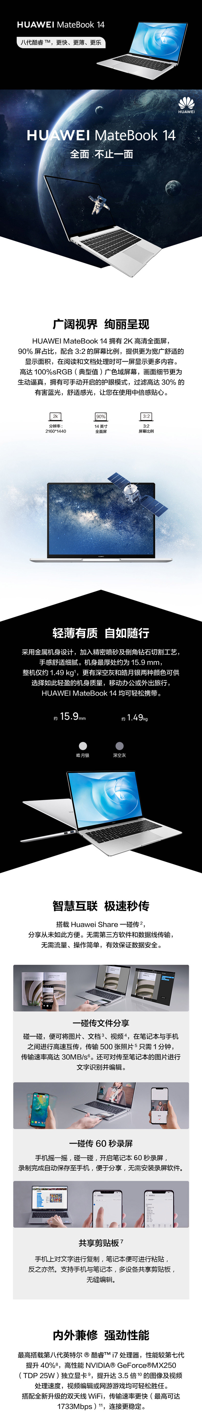 華為 MateBook 14便攜式計算機 酷睿i5-10210U處理器 16G內存 512G固態(tài) 獨顯 WIN10HM 14寸 兩年質保