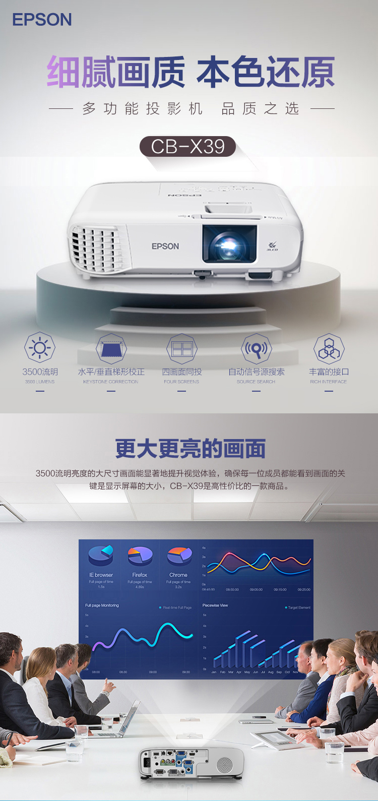 愛普生(EPSON)CB-X39 投影儀 3500流明 1024*768 對比度15000:1 支持梯形校正/HDMI高清輸入/USB直連/3LCD
