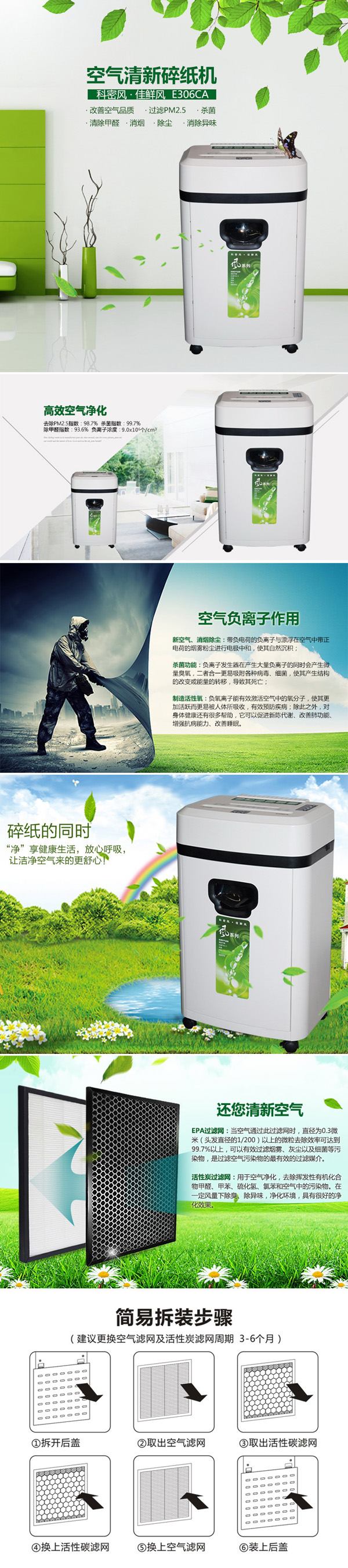 • 商品名稱:科密(Comet)碎紙機 E306CA 中型碎光盤信用卡顆粒電動靜音辦公負離子空氣凈化