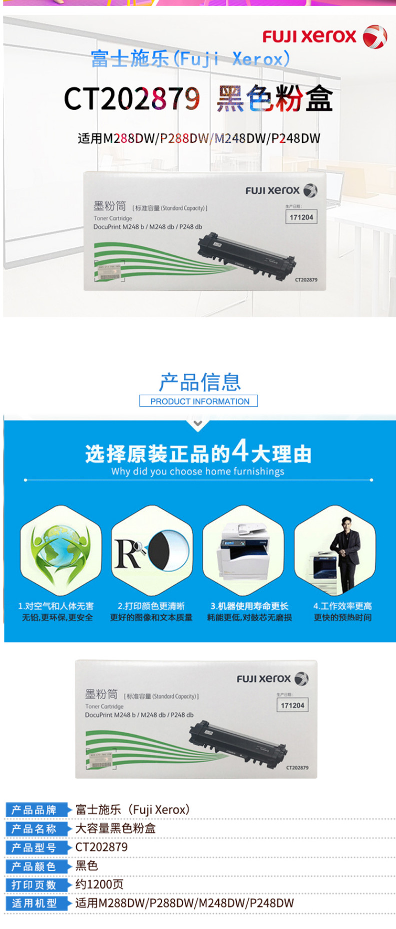 • 商品名稱:富士施樂(Fuji Xerox)CT202879 標準容量黑色粉盒(適用M288DW/P288DW/M248DW/P248DW)