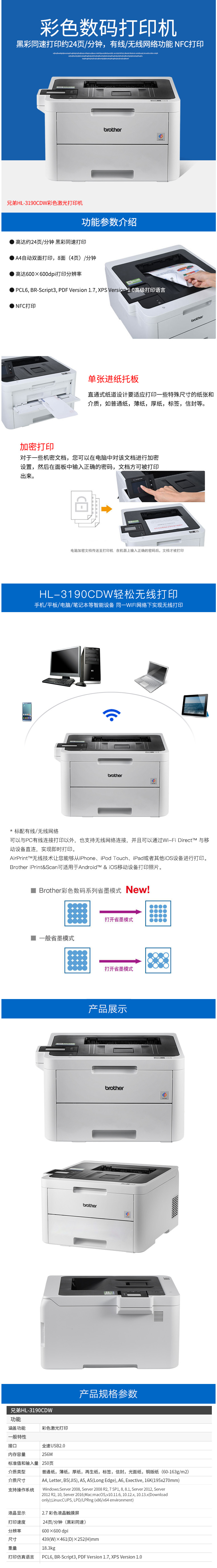 • 商品名稱:兄弟(BROTHER) HL-3190CDW彩色多功能一體機 網(wǎng)絡(luò)自動雙面打印 無線連接