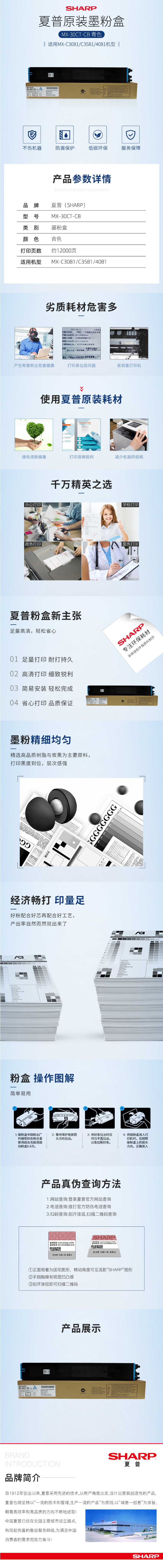 • 商品名稱:夏普(SHARP)MX-30CT-CB 原裝青色墨粉盒 適用于MX-C3081/C3581/4081/5081 約12000頁(yè)