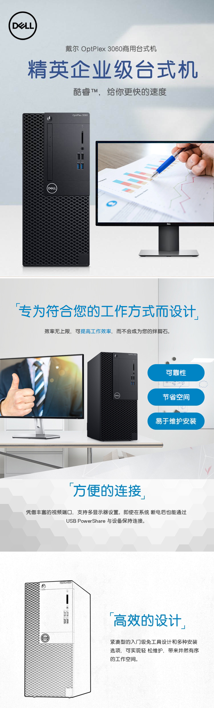 戴爾(DELL)OptiPlex 3060 Tower 231317 臺式電腦 Intel酷睿I5-8500 3.0GHz六核 8G-DDR4內(nèi)存 1T SATA硬盤+128G固態(tài)硬盤 集顯 DVDRW 中標(biāo)麒麟V7.0 +23.8英寸顯示器 三年上門保修服務(wù)