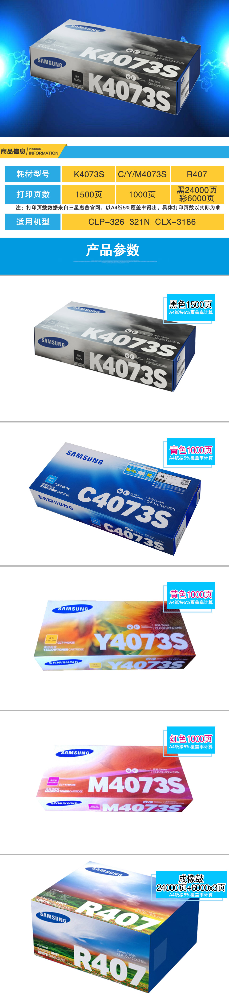 三星(SAMSUNG)CLT-K4073S/XIL黑色墨粉 適用于CLP-328 326 321N 3186
