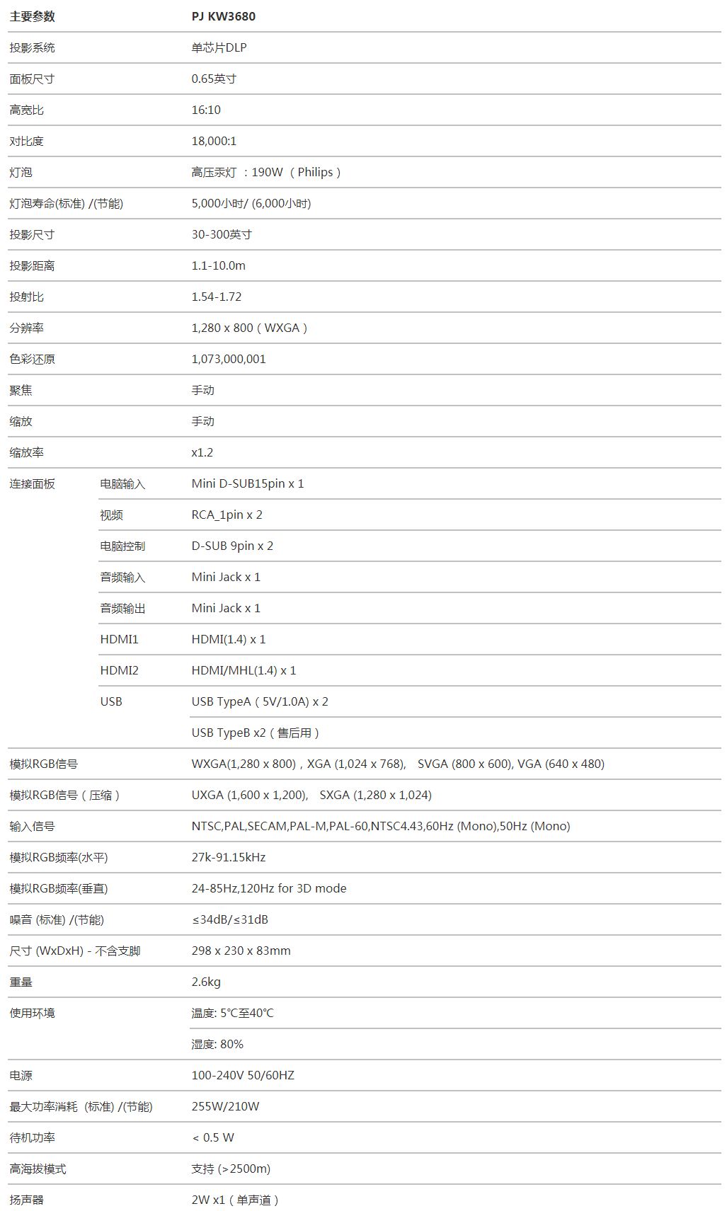 • 商品名稱:理光(Ricoh)KW3680投影儀 3300流明 WXGA分辨率 1280*800