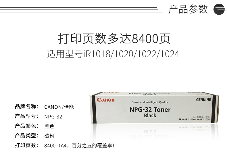 • 商品名稱:佳能(Canon)碳粉NPG-32適用于iR1022/1022J/1022iFiR1024J/1024/1024iF