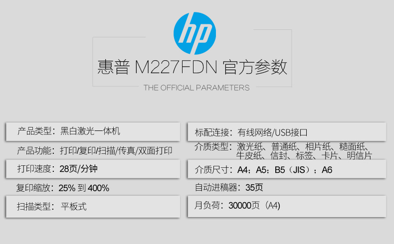 • 型號(hào):LaserJet Pro MFP M227fdn