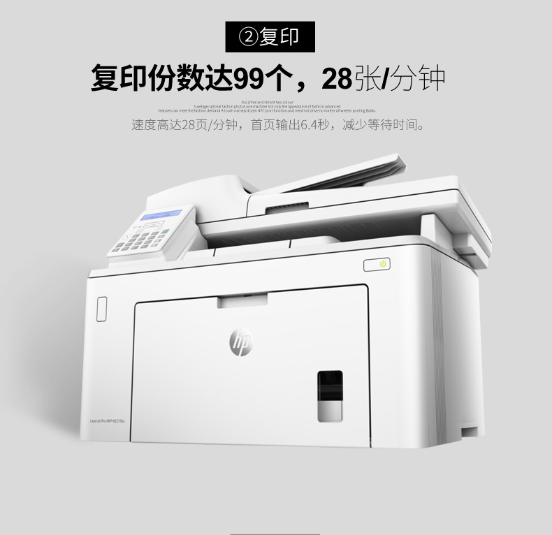 • 商品名稱:惠普(HP)A4黑白激光多功能一體機(jī)LaserJet Pro MFP M227fdn 打印 復(fù)印 掃描 傳真 自動(dòng)雙面 有線網(wǎng)絡(luò) 28ppm 分辨率1200×1200dpi 適用耗材:CF230A/CF230X/CF232A 鼓粉分離