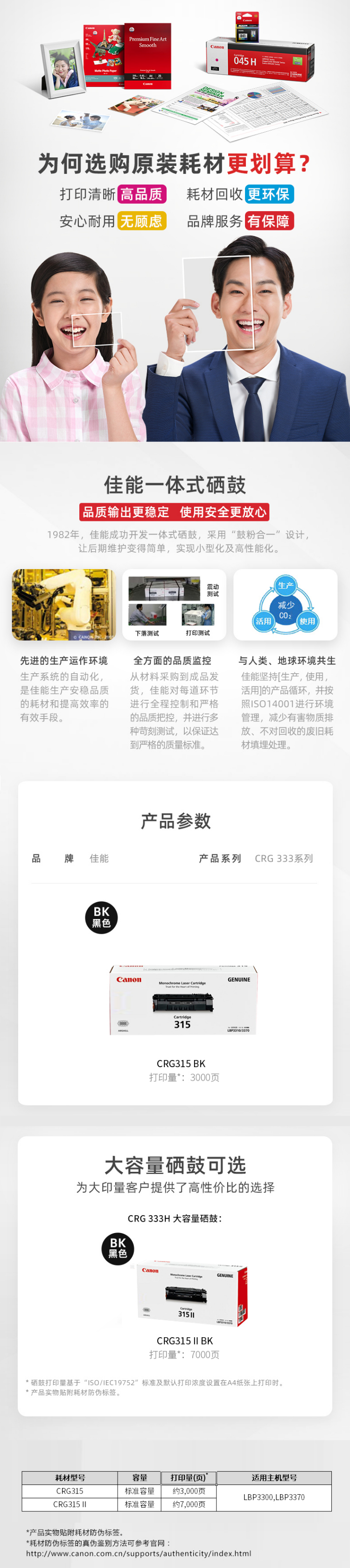• 商品名稱:佳能(Canon) CRG 315 黑色硒鼓 打印量3000頁(yè) 適用于LBP3310,LBP3370
