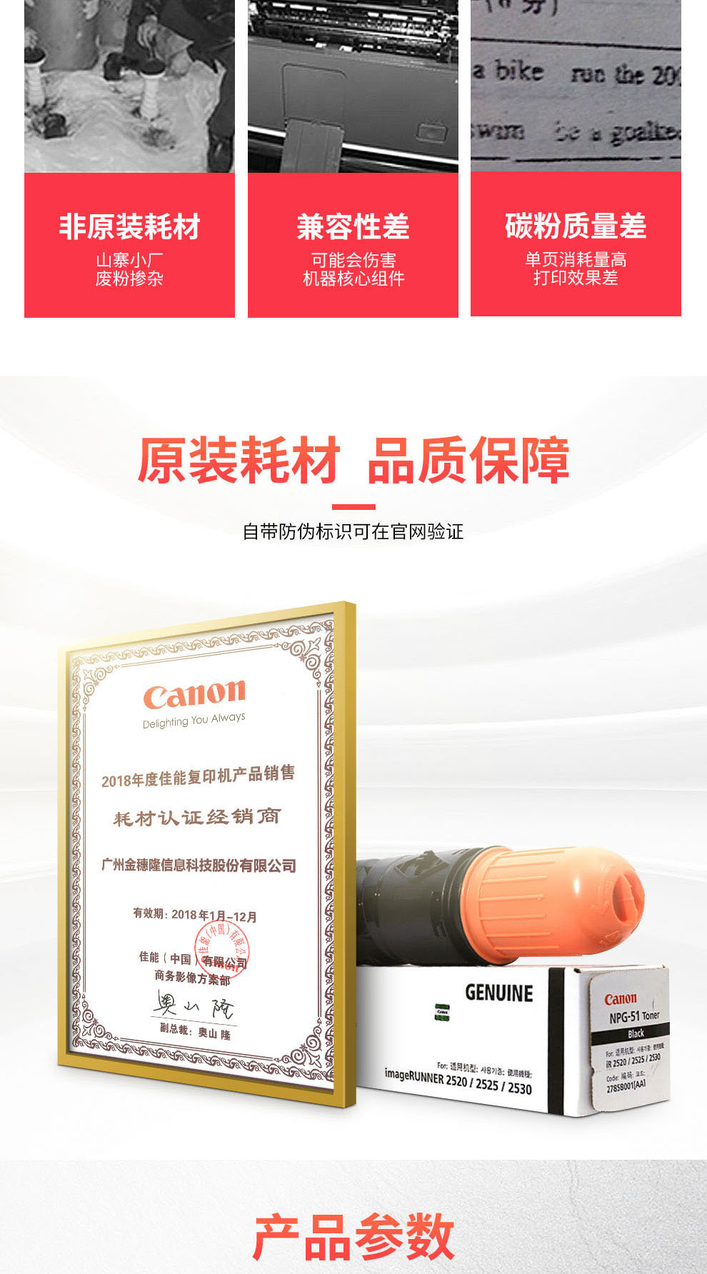 • 商品名稱:佳能(Canon)碳粉NPG-51適用于iR2520i/2525i/2525/2530i