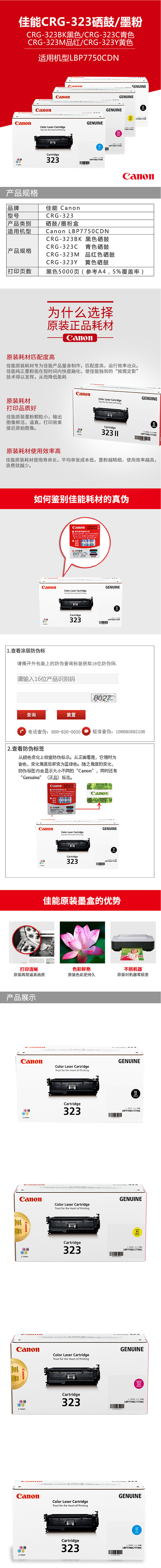 • 商品名稱:佳能(Canon) CRG 323 BK 黑色硒鼓 打印量5000頁 適用于LBP7750CDN
