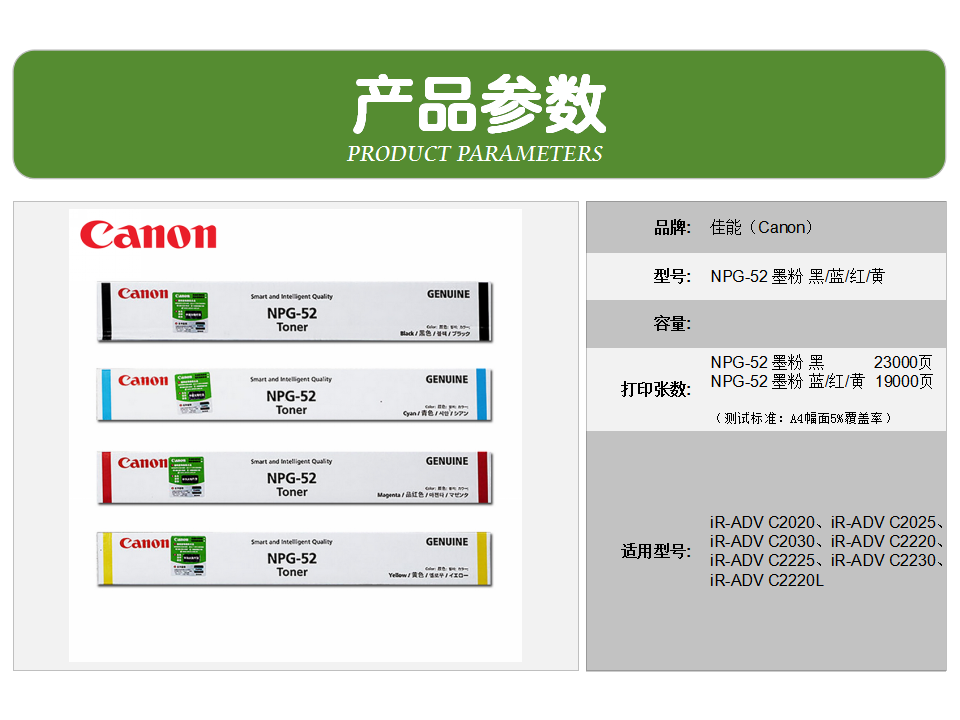 • 商品名稱:佳能(Canon)碳粉(黑色)NPG-52BK適用于iR-ADV C2020/C2025/C2030/C2220/C2225/C2230/C2220L