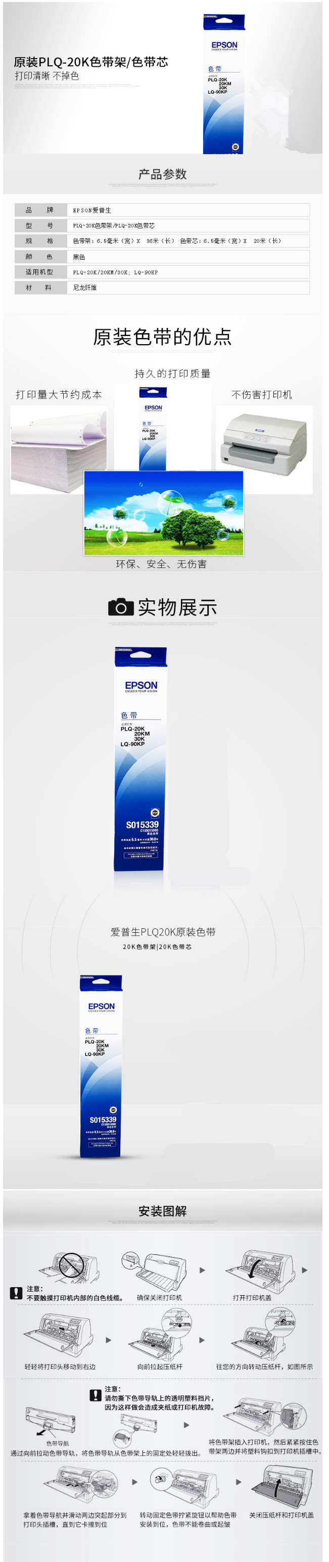 - 商品名稱:愛普生 色帶架 PLQ-20K 適用PLQ-20KM 30K LQ-90KP S015339 寬6.5mL*36M長 黑色