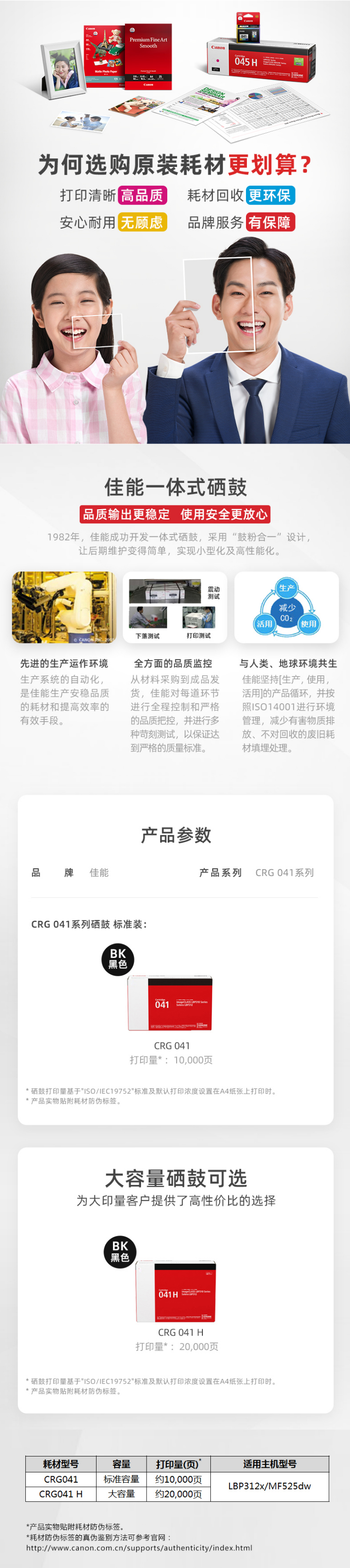 • 商品名稱:佳能(Canon) CRG 041 黑色硒鼓 打印量10000頁 適用于LBP312X,MF525DW