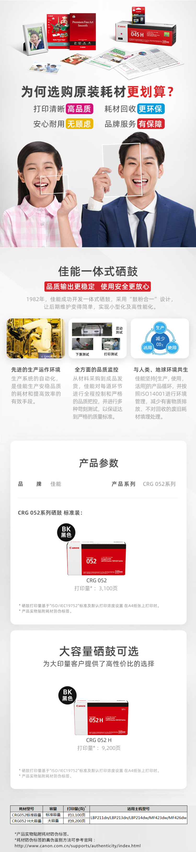 佳能(Canon) CRG 052 黑色硒鼓 打印量3100頁 適用于LBP214DW,LBP213DN,LBP211DN,MF426DW,MF423DW