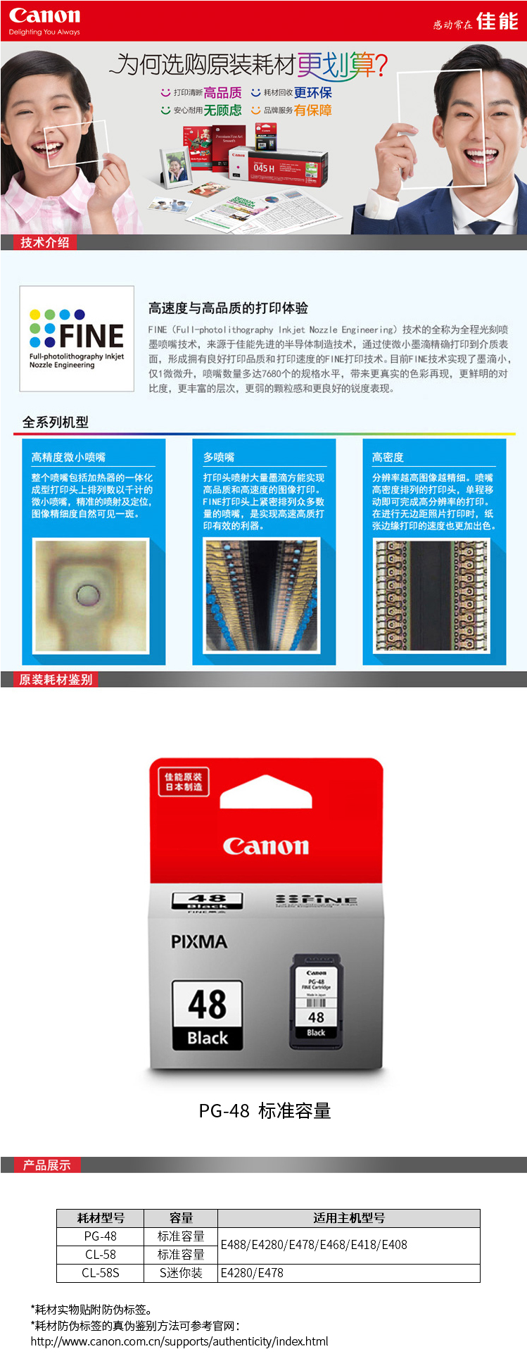 佳能(Canon) PG-48 黑色墨盒 打印量400頁 適用于E488、E4280、E478、E468、E418、E408