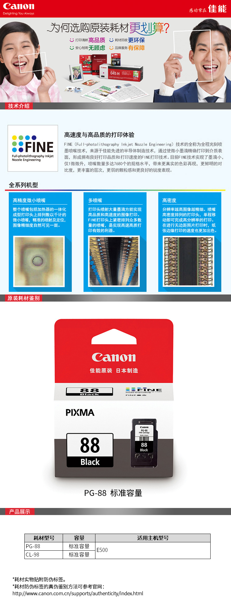 佳能(Canon) PG-88 黑色墨盒 適用于E500