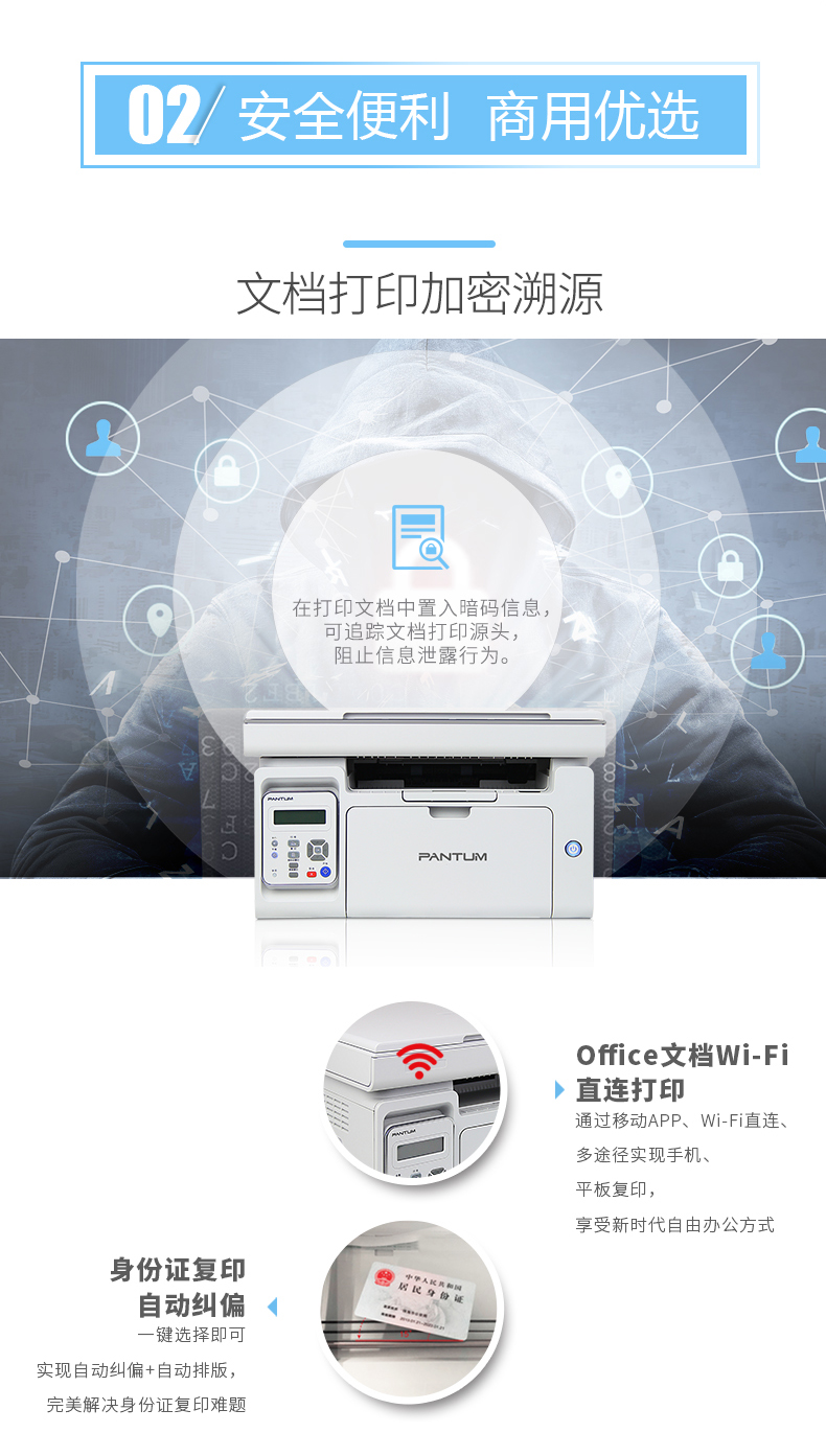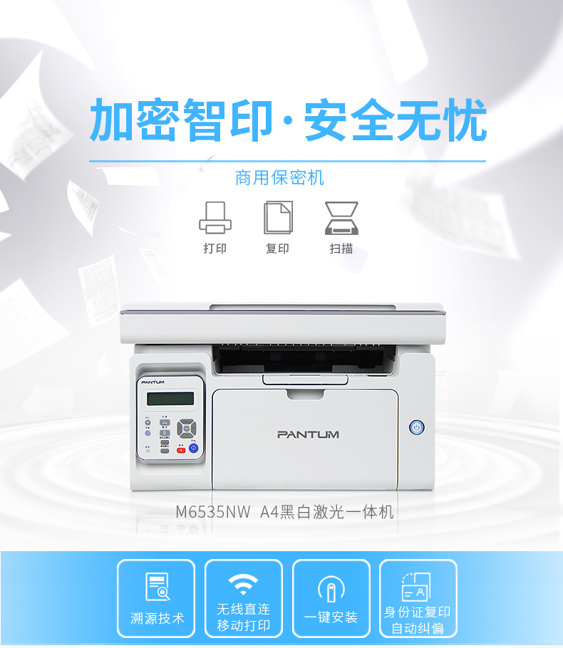 奔圖(PANTUM) M6535NW 商業(yè)保密A4黑白多功能一體機(jī) 打印/復(fù)印/掃描
