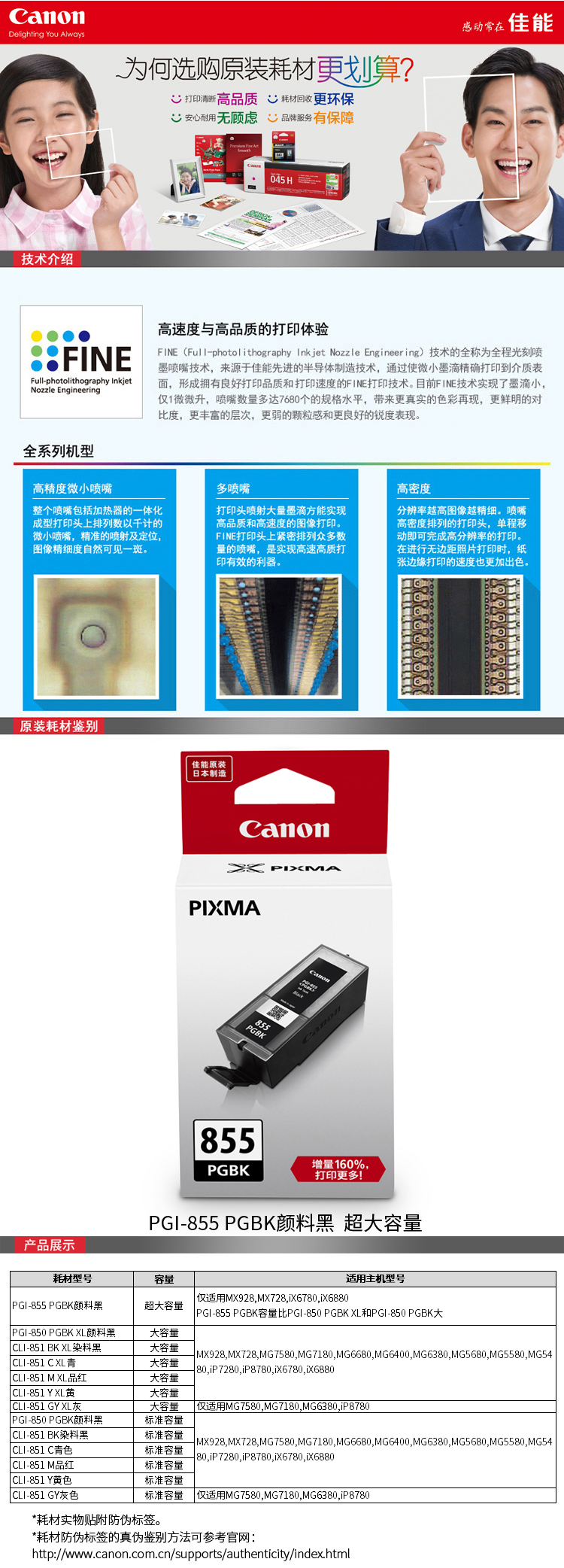 - 商品名稱:佳能(Canon) PGI-855 Bk 黑色墨盒 適用于MX928、MX728、iX6780、iX6880
