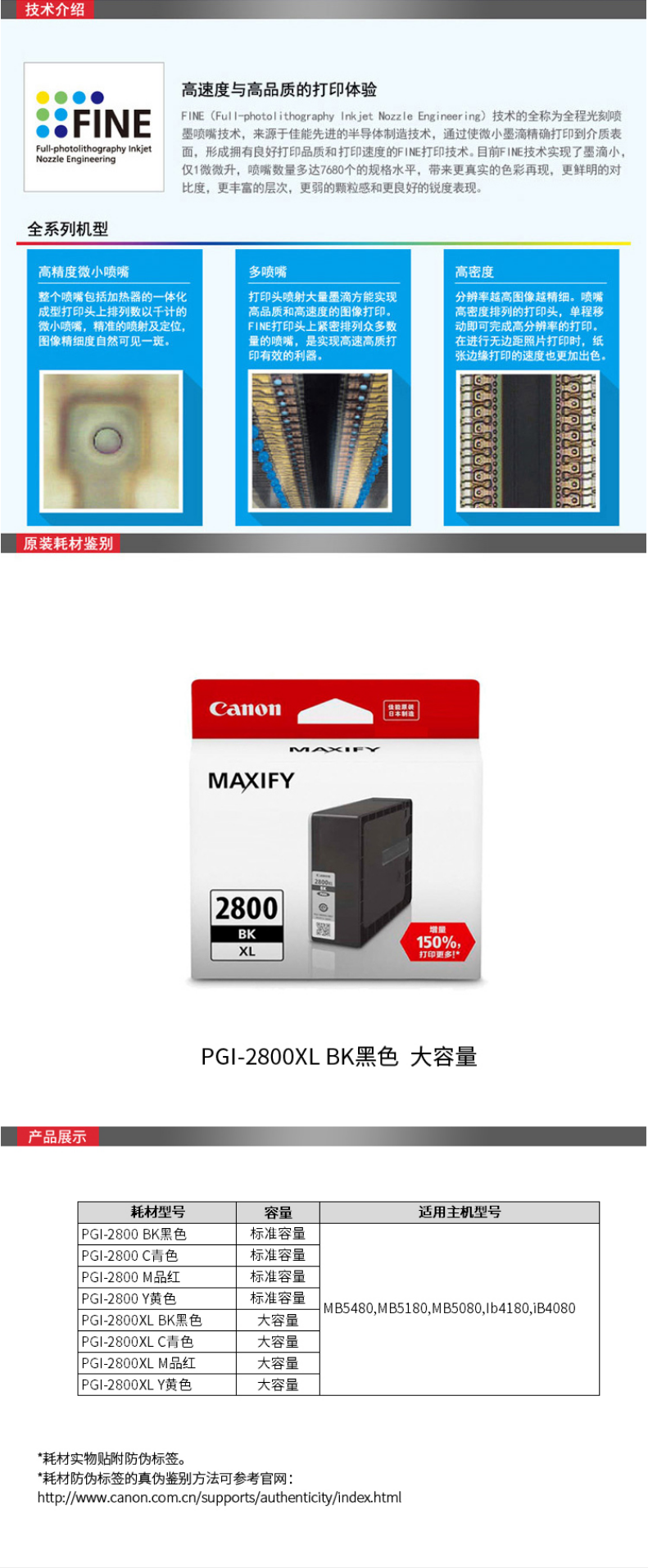 佳能(Canon) PGI-2800XL BK 大容量黑色墨盒 打印量2500頁(yè) 適用于MB5480、MB5180、MB5080、iB4180、iB4080