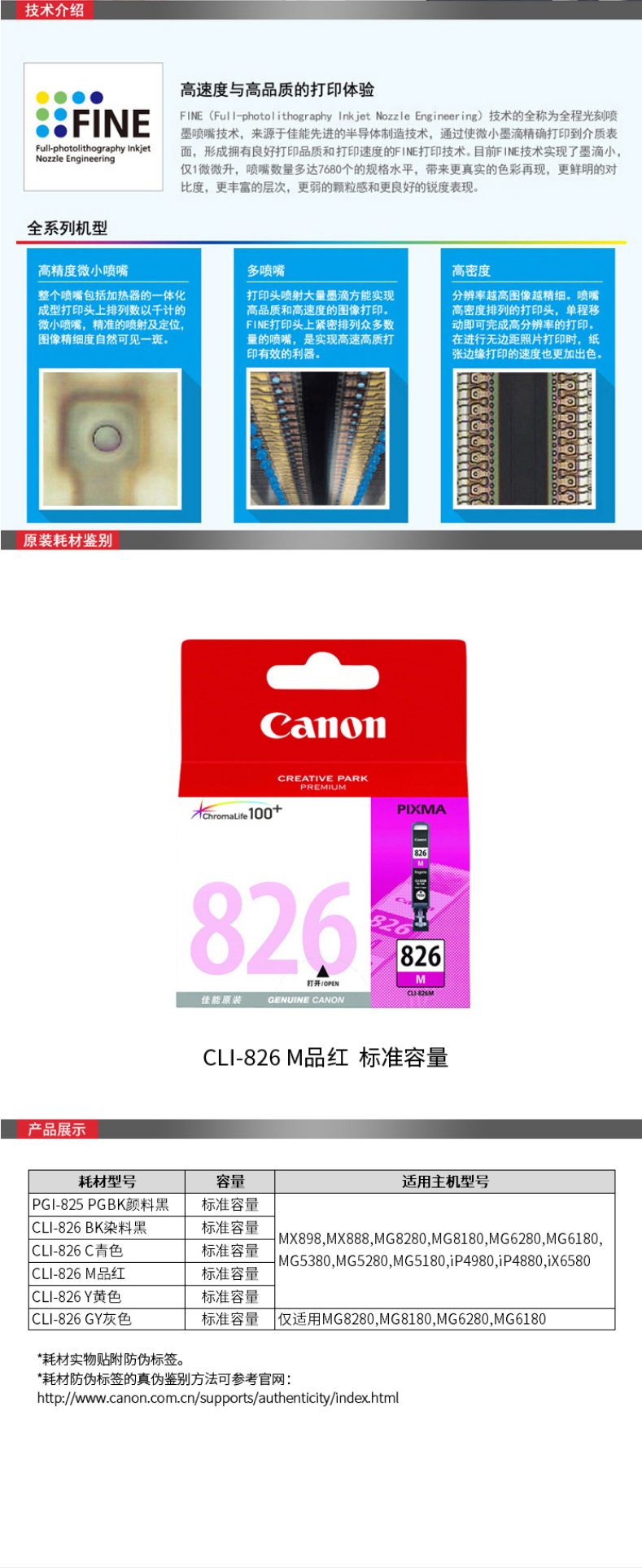 - 商品名稱:佳能(Canon) CLI-826 M 紅色墨盒 適用于MX898、MX888、MG8280、MG8180、MG6280、MG6180、MG5380、MG5280、MG5180、iP4980、iP4880、iX6580
