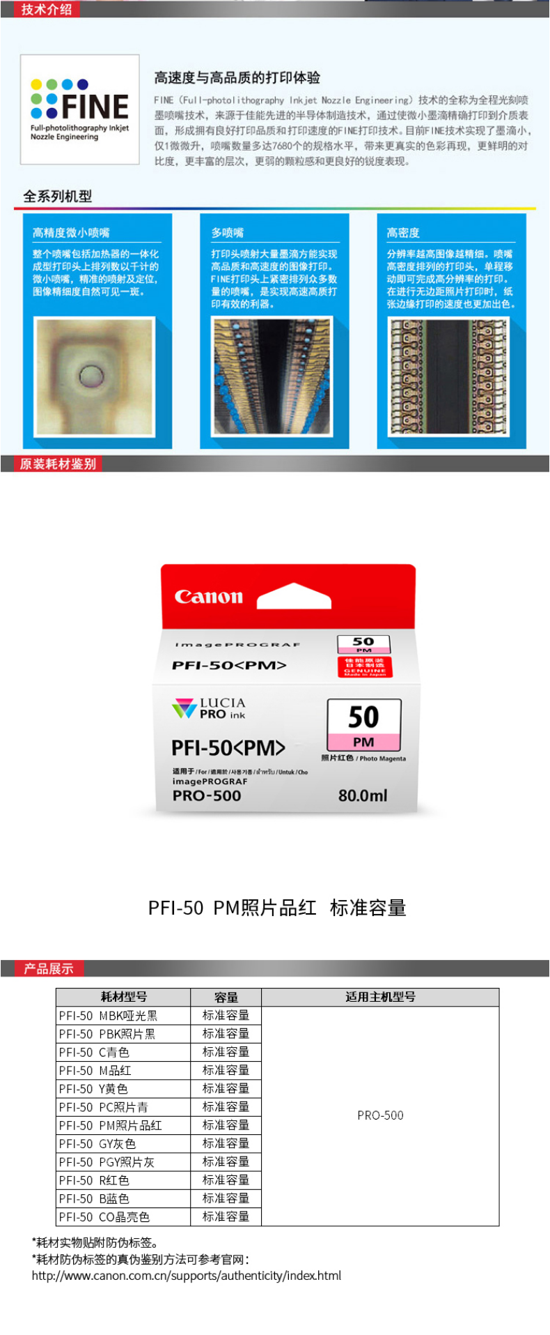 • 規(guī)格:PFI-50 PM 照片紅色墨盒