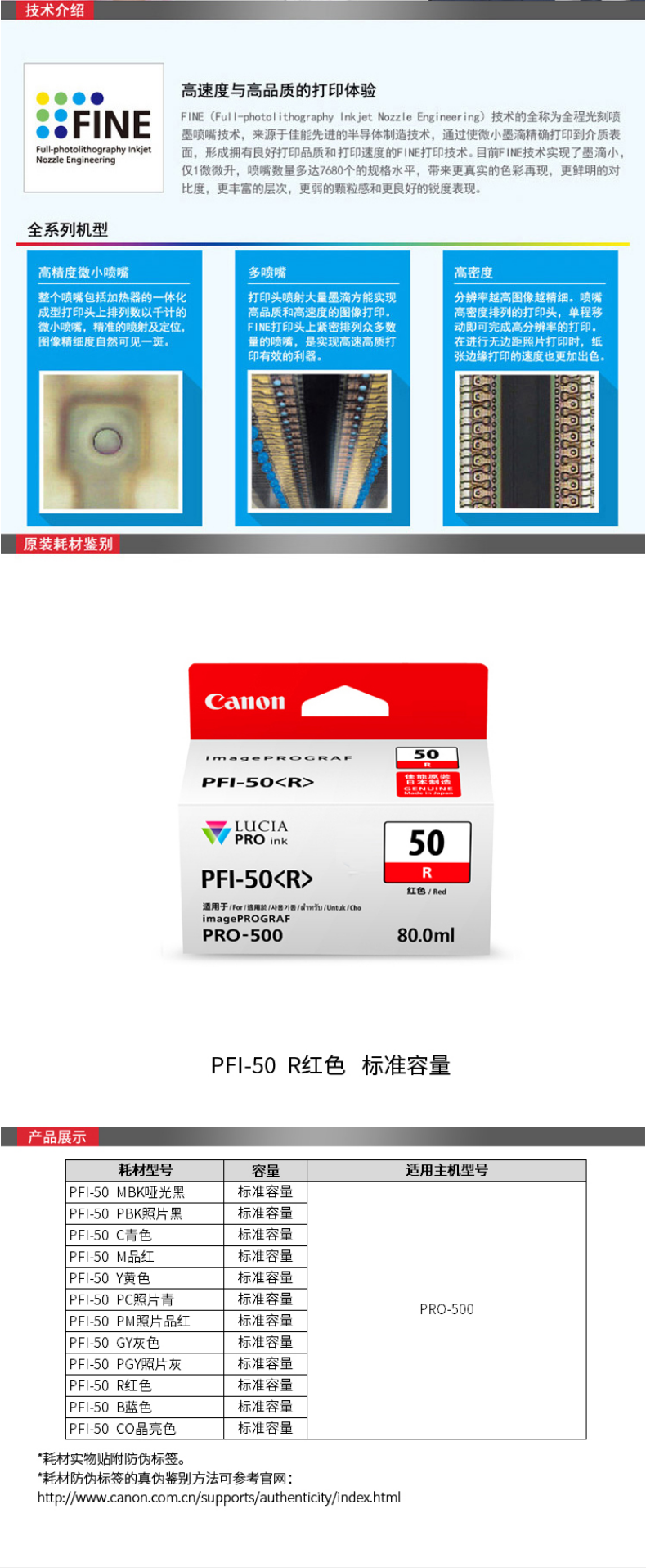 • 規(guī)格:PFI-50 R 紅色墨盒
