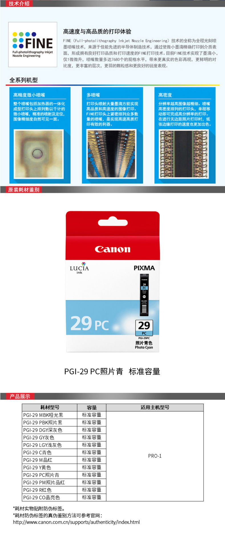 • 商品名稱:佳能(Canon) PGI-29 PC ASA 照片青色墨盒 打印量1375頁 適用于PRO-1