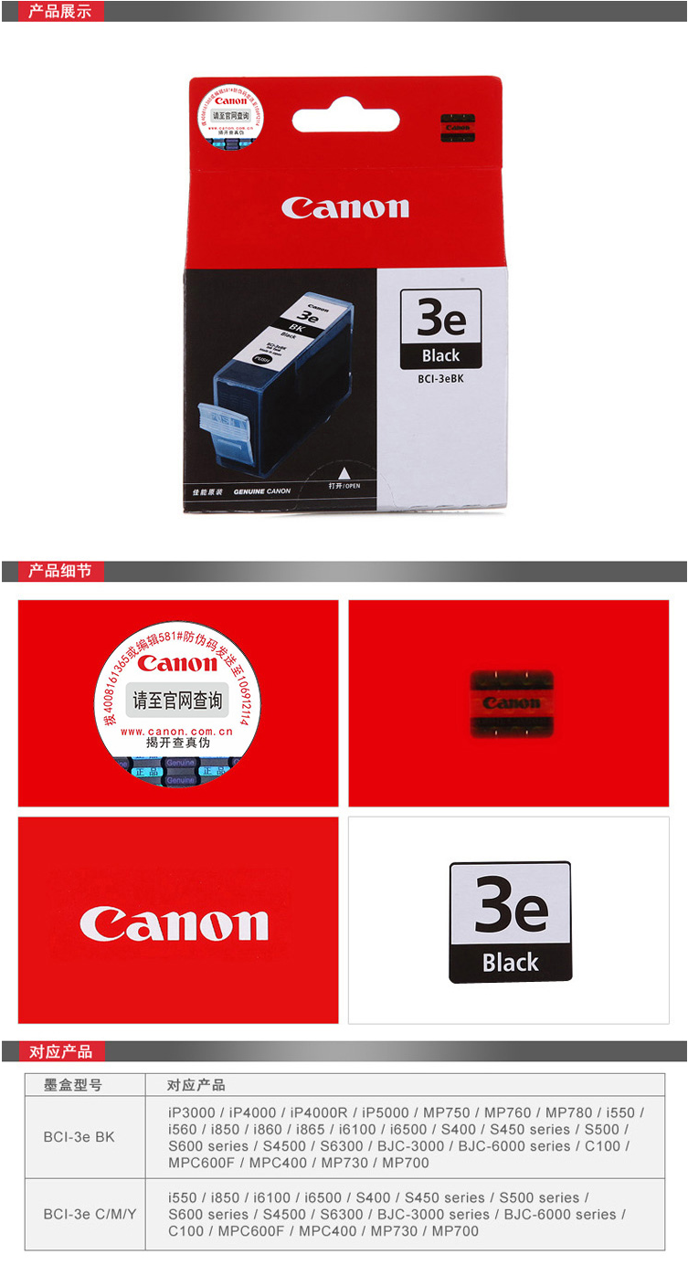 - 商品名稱:佳能(Canon) InkTank BCI-3e BK 黑色墨盒 適用于i6500/i6100 MP730