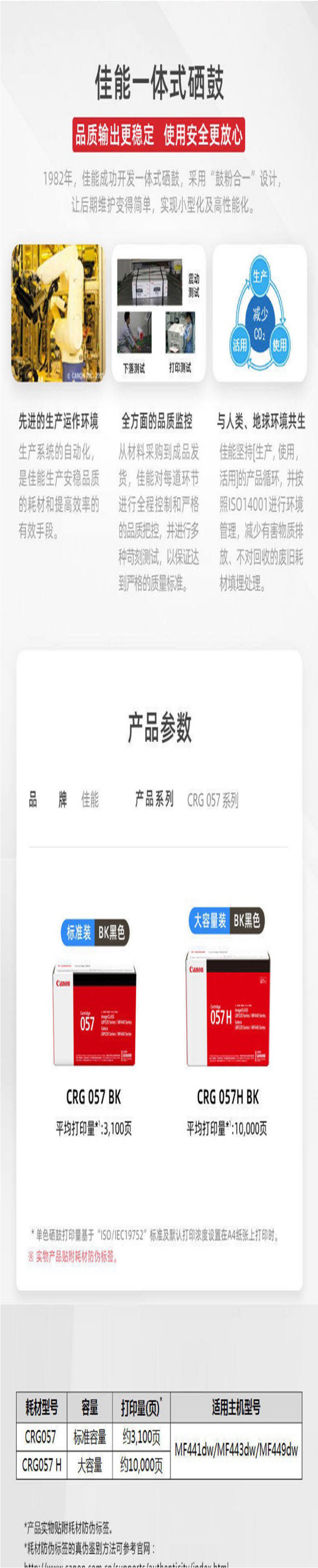 • 商品名稱:佳能(Canon) CRG 057 黑色硒鼓 打印量3100頁(yè) 適用于iC MF441dw、iC MF443dw、iC MF449dw