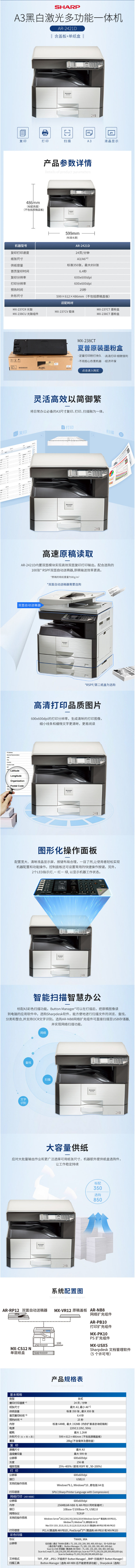 • 商品名稱:夏普(SHARP)AR-2421D A3黑白復(fù)印機(jī) 主機(jī)+蓋板+單紙盒