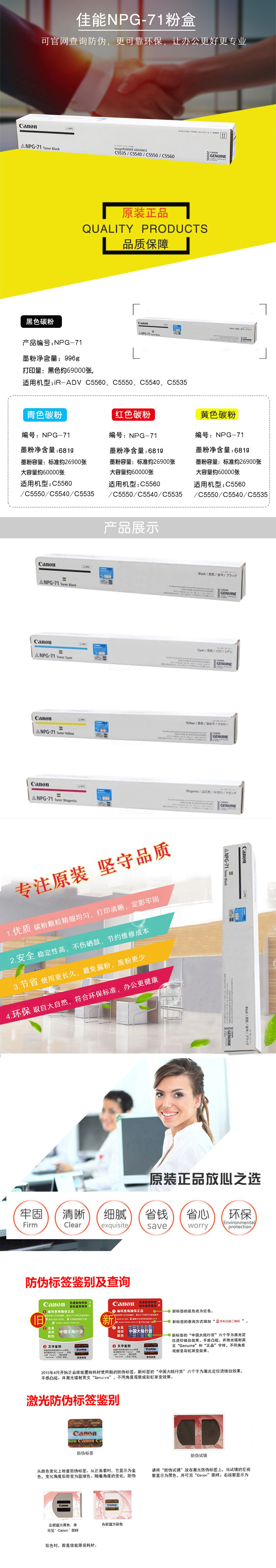 - 商品名稱:佳能(Canon)碳粉(黃色)NPG-71適用于iR-ADV C5535/C5540/C5550/C5560