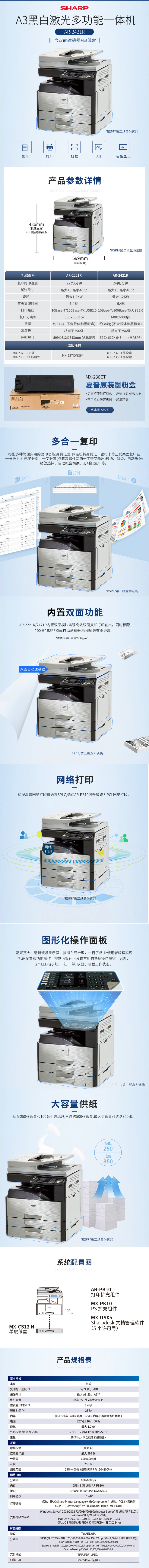 夏普(SHARP)AR-2421R A3黑白復(fù)印機(jī) 主機(jī)+雙面輸稿器+單紙盒