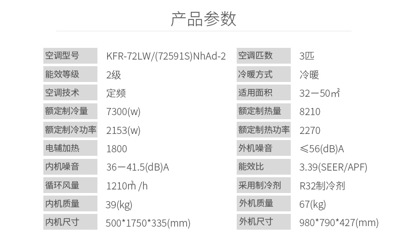 • 型號:KFR-72LW/(72591S)NhAd-2