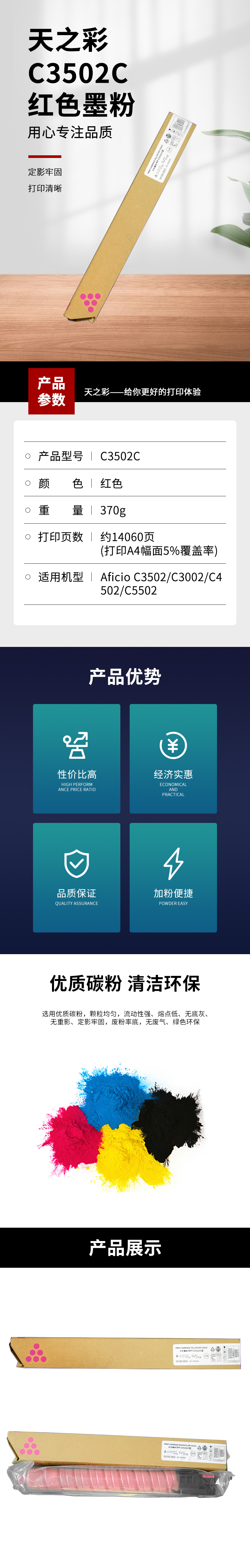 • 商品名稱:天之彩(Skyras)C3502 紅色墨粉 適用于Aficio C3502/C3002/C4502/C5502