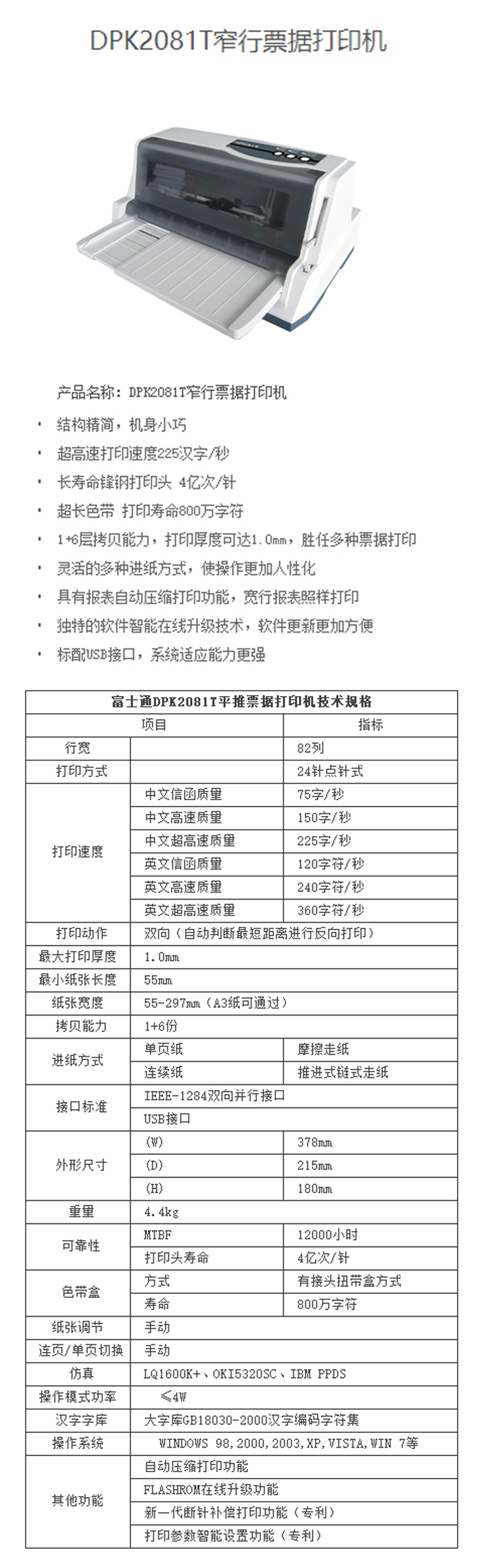 - 商品名稱:富士通(Fujitsu)DPK2081T針式打印機(jī)