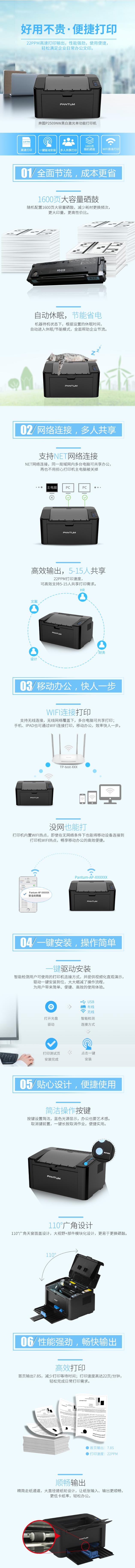 • 商品名稱:奔圖(PANTUM)P2509NW A4黑白激光打印機 打印速度 22ppm 分辨率1200×1200dpi 手動雙面 耗材PD-219