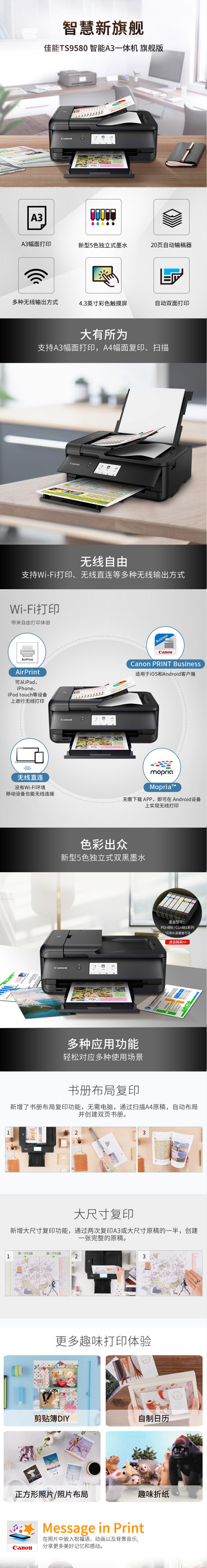 • 商品名稱:佳能(Canon)A3彩色噴墨多功能一體機 TS9580 原廠1年送修