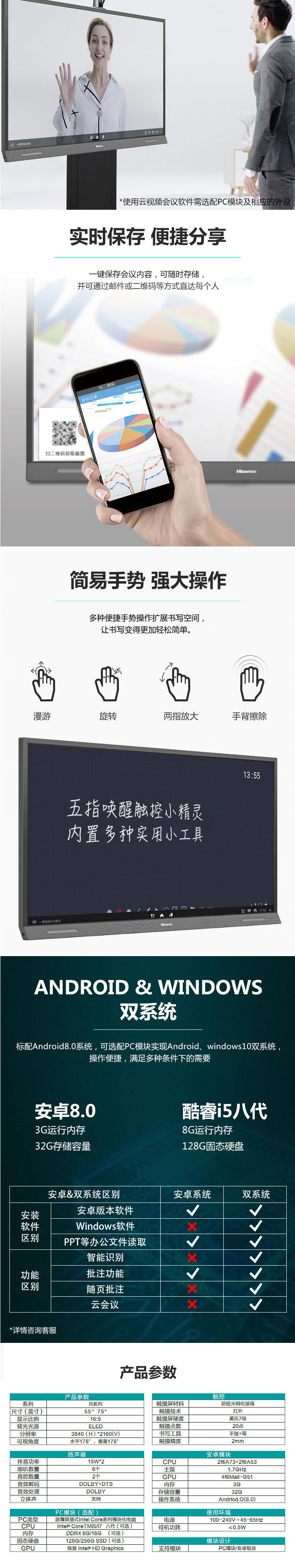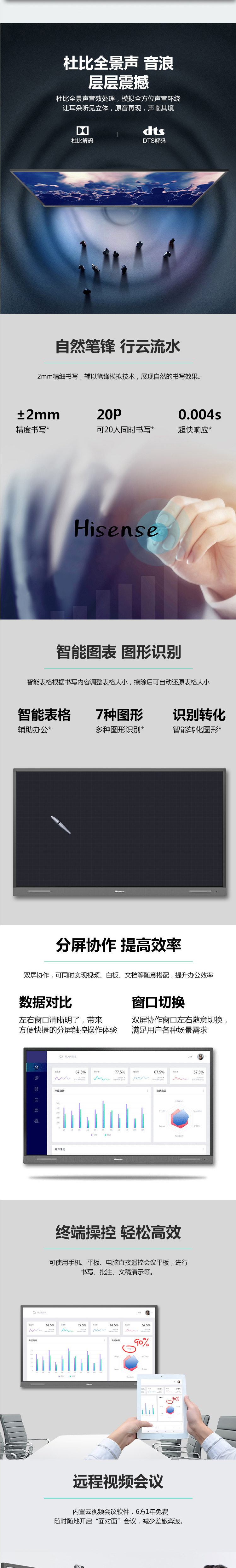 海信(Hisense)65R6A 液晶顯示器 智能會議平板 65英寸 4K超高清 有線/無線 分辨率3840*2160 (16:9)商務(wù)太空灰