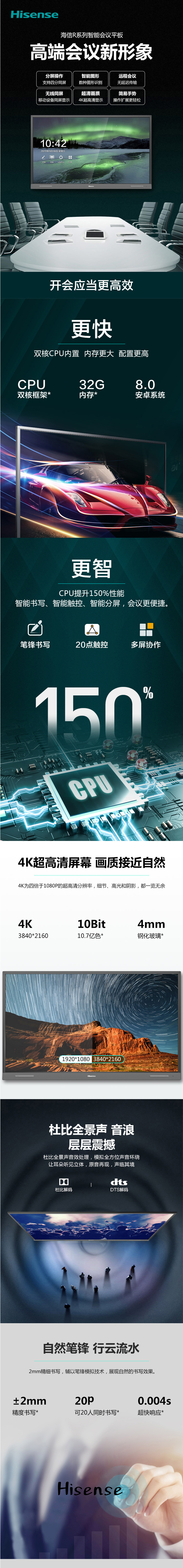 • 商品名稱:海信(Hisense)75R6A 電視機(jī) 智能會(huì)議平板 75英寸 4K超清 有線/無線 分辨率3840*2160 (16:9) 商務(wù)太空灰
