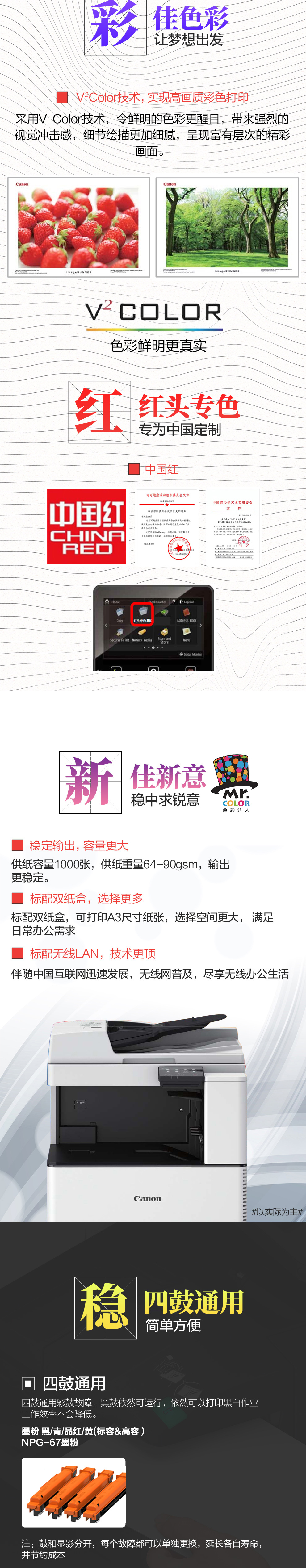 • 商品名稱:佳能(Canon)imageRUNNER C3120L A3彩色數(shù)碼復合機 雙面打印/掃描/WiFi 含主機 雙面輸稿器 雙紙盒 工作臺 適用耗材:NPG-67