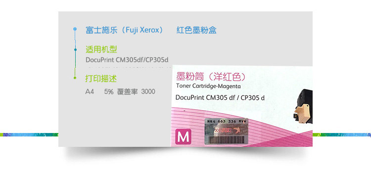 • 商品名稱:富士施樂(FujiXerox)CP305d,CM305df紅色墨粉筒,粉盒,碳粉 打印量約3000頁 適用于DocuPrint CM305df/CP305d