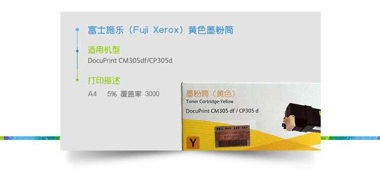- 商品名稱:富士施樂(lè)(FujiXerox)CP305d,CM305df黃色墨粉筒,粉盒,碳粉 打印量約3000頁(yè) 適用于DocuPrint CM305df/CP305d