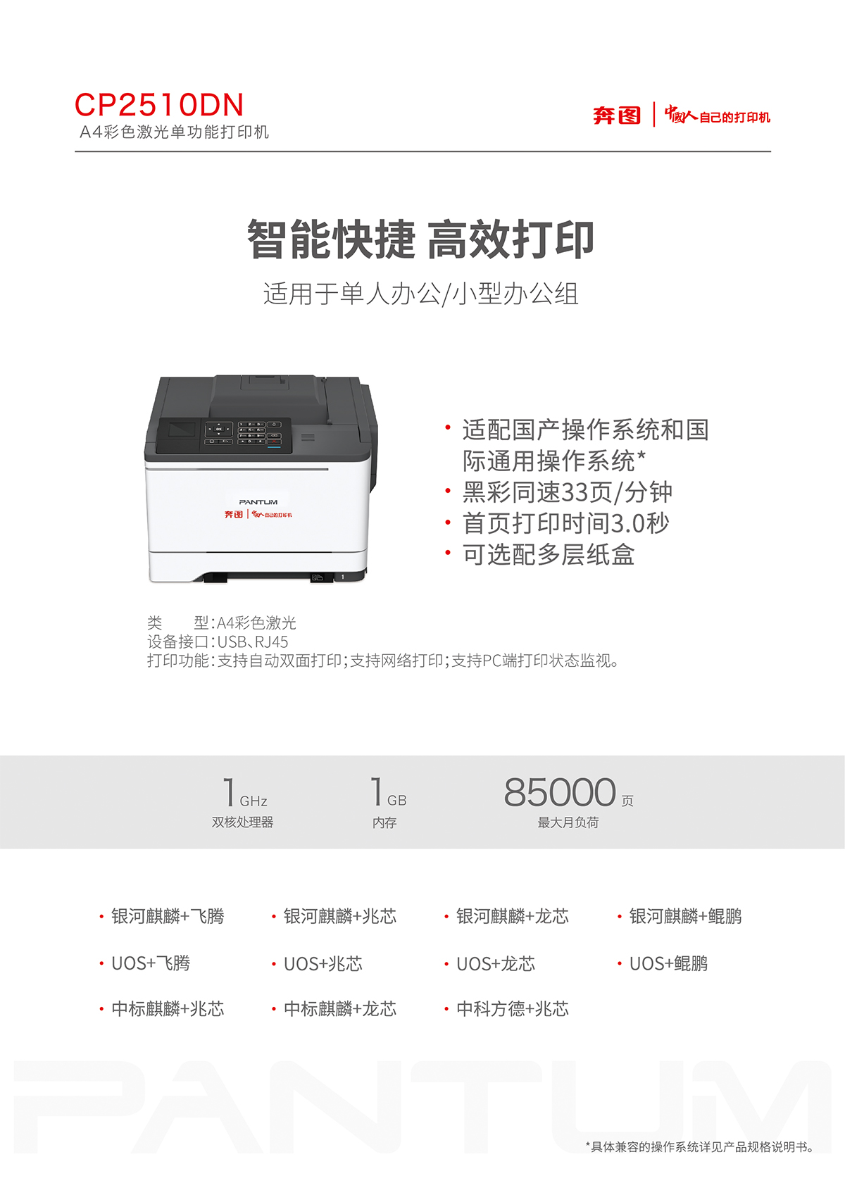 • 商品名稱:奔圖(PANTUM)CP2250DN A4彩色激光打印機(jī)