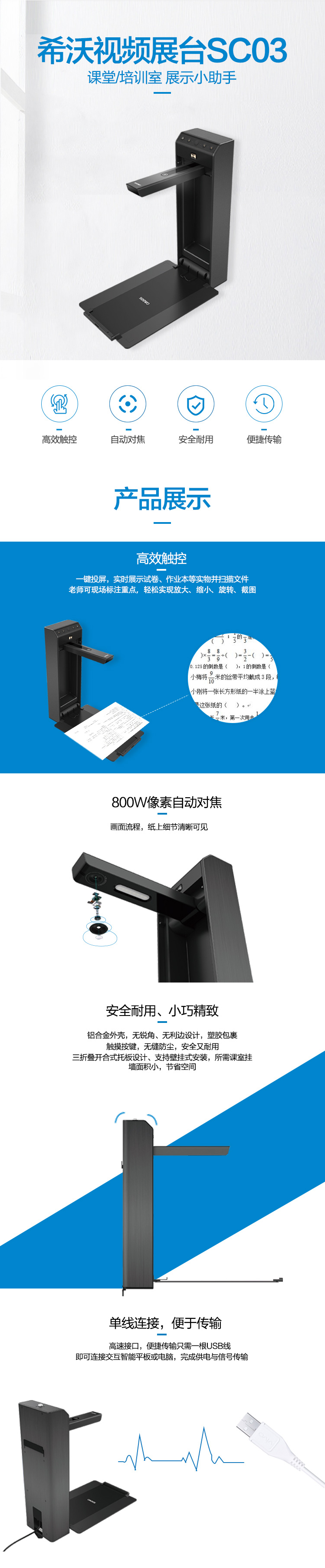 • 商品名稱:希沃(seewo)SC03 壁掛式視頻展臺 黑色