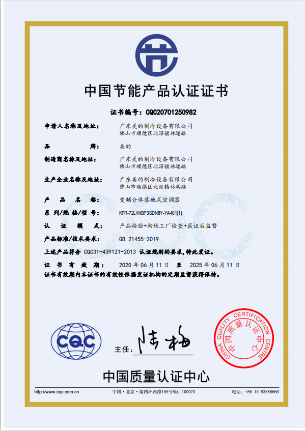 • 節(jié)能產(chǎn)品證書編號(hào):CQC20701261171