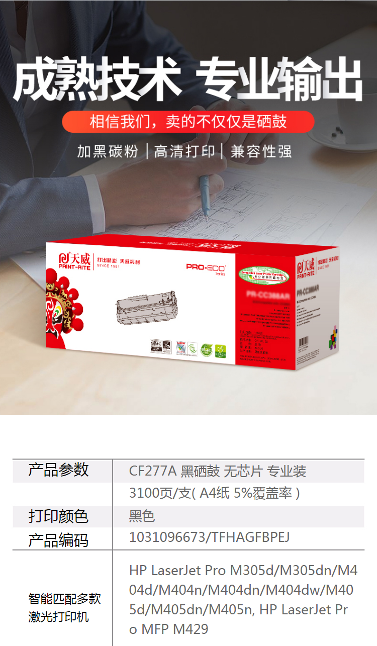 - 商品名稱:天威 CF277A黑色硒鼓 打印量約3100頁(yè) 適用惠普HP-M305 M404 M405 M429打印機(jī) 專業(yè)裝 無(wú)芯片